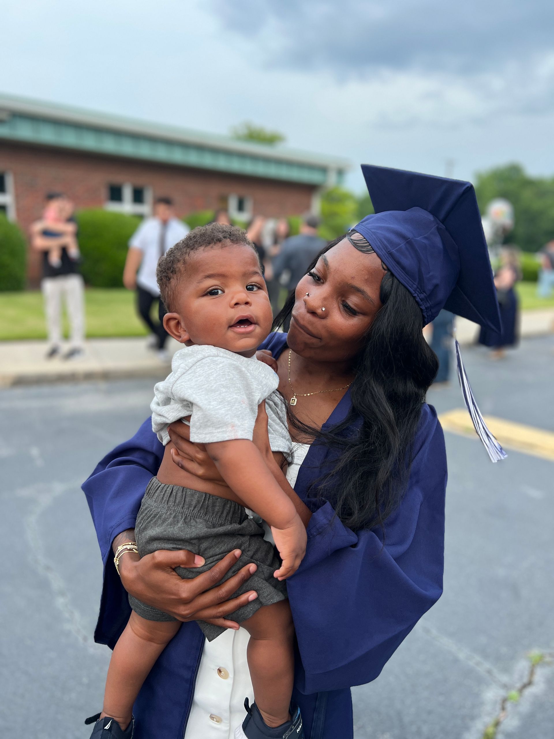 During her pregnancy and continuing after having her son, Akari, Latoya chose to come to Team Up to access technology and get occasional assistance with her school work each week until her graduation in May. With her degree from Faith Academy, she is currently getting ready to pursue college classes in Athens Tech.